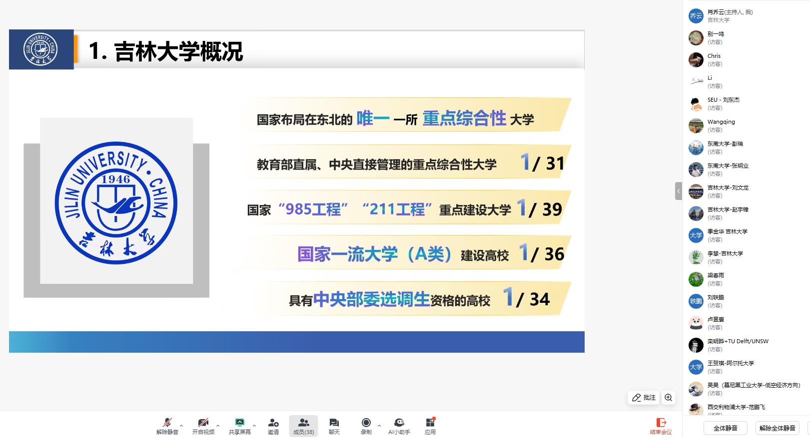 宣讲会由别一鸣院长主讲。会上,首先向与会学者全面介绍了吉林大学悠久的办学历史、卓越的学术声誉以及在人才培养、科学研究、社会服务等方面取得的突出成就,并重点分享了在各行各业涌现出的杰出校友,彰显了学校雄厚的人才培养底蕴和广阔的社会影响力。