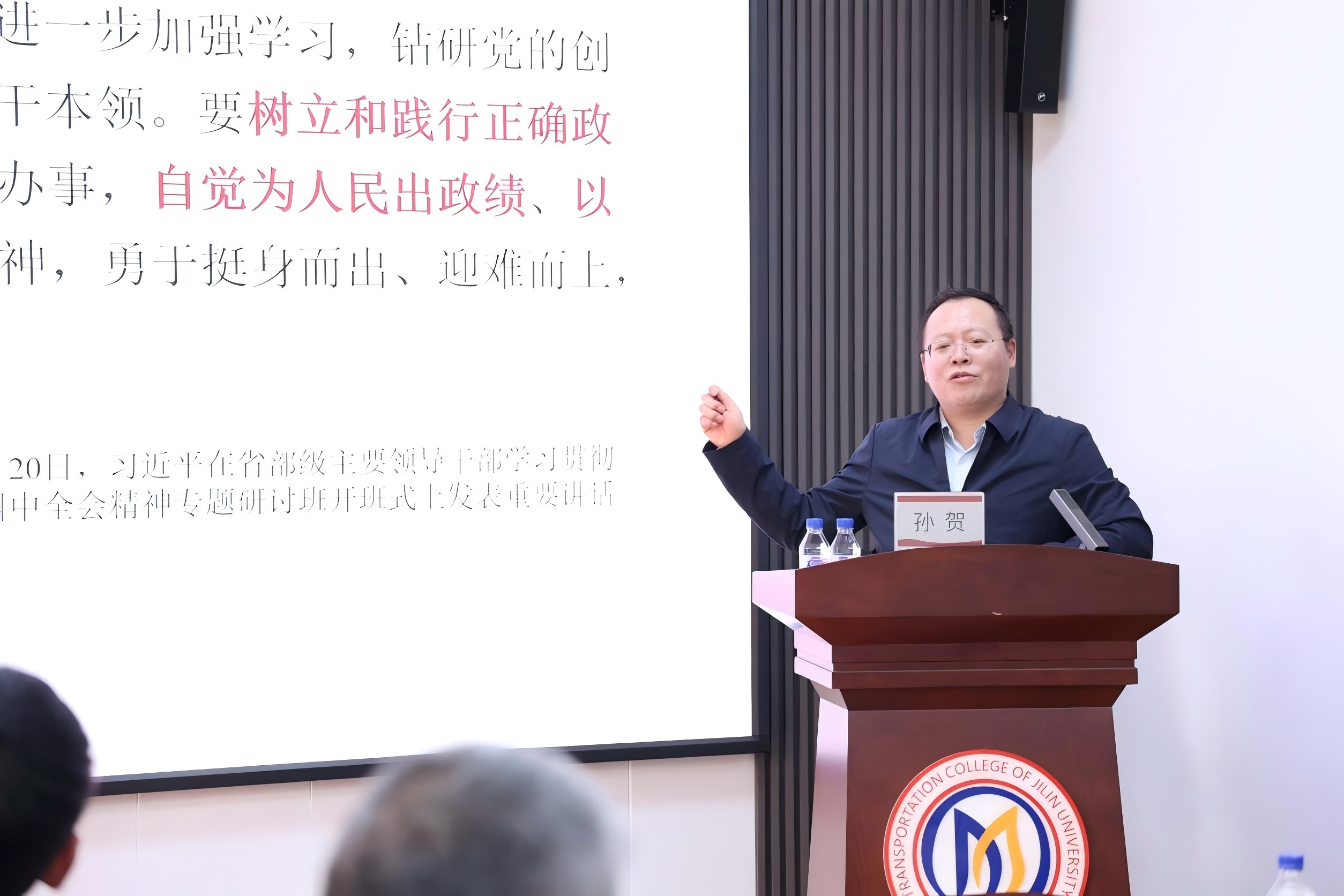 为深入学习贯彻习近平总书记关于树立和践行正确政绩观的重要论述,推动党员干部牢记初心使命、强化责任担当,以正确政绩观引领学院事业高质量发展,2026年4月8日,交通学院、材料科学与工程学院、生物与农业工程学院联合举办树立和践行正确政绩观学习教育读书班专题辅导报告会。特别邀请吉林大学马克思主义学院教授孙贺作题为《政绩观问题是一个根本性问题》的专题辅导。